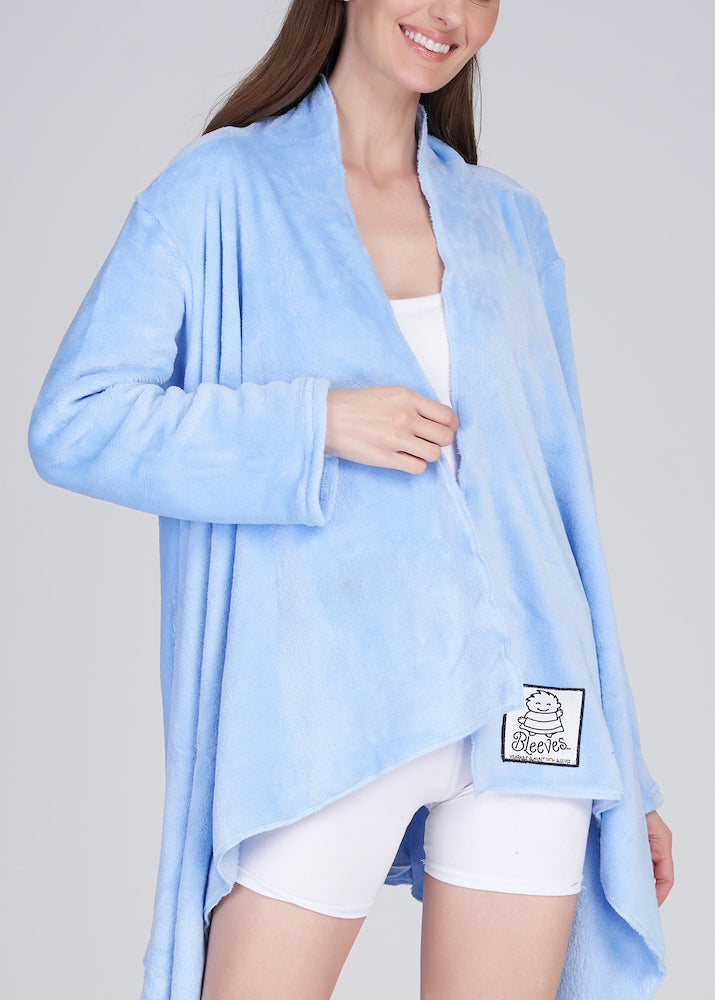 Stay effortlessly warm and stylish with Bleeves® Blazer, a chic, structured take on the classic wearable blanket. Designed to provide both comfort and elegance, it features a blazer-style open front, offering a polished look while keeping you cozy. Whether you're working from home, attending meetings at the office, traveling, or heading out on a chilly day, the Bleeves® Blazer is the perfect balance of warmth and sophistication.